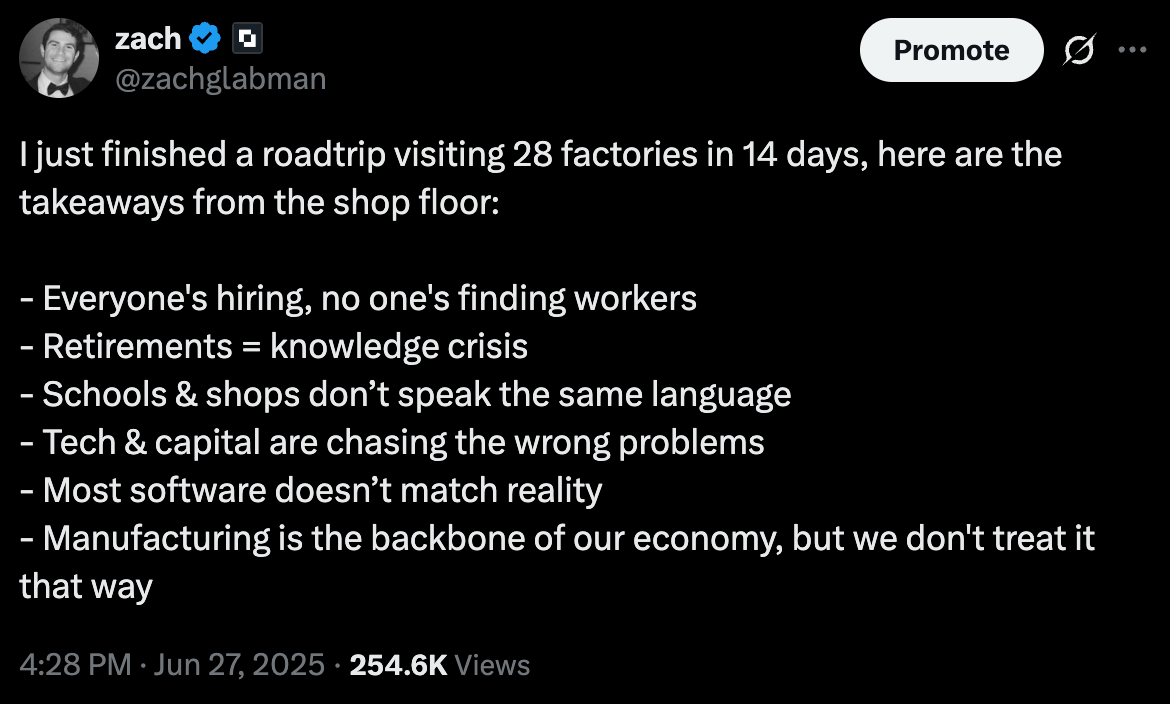 Visiting 28 factories showed me that doomer narratives are dead wrong: American manufacturing isn’t dying. It’s evolving. Most people still think manufacturing is dirty, dangerous work from the 1970s. But these aren’t your grandfather’s factories.